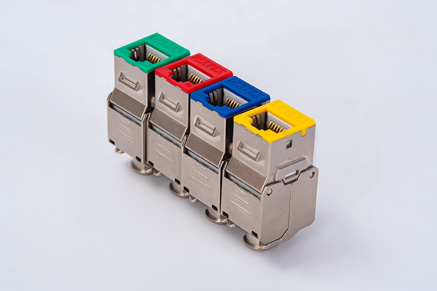 彩色锌合金屏蔽CAT6/CAT6A/CAT7免打网络模块